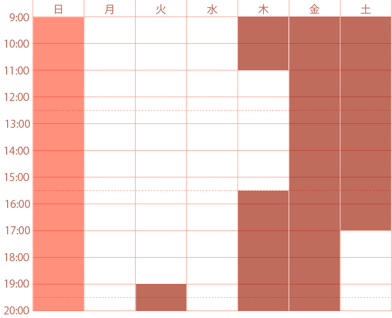 9:00~20:00 最初の1時間:1200円 以降30分ごと:500円 ※時間外レンタルについてはご相談下さい。 ※駐車スペースの利用も利用時間に含まれます。 ※定期利用の場合は割引致します。